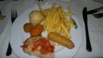 Tre piatti dal ristorante Borbone di San Leucio scelto da alcuni amici dirigenti della Sutor (Osmar Oldrini della segreteria, Milena Pizi area marketing, Giuseppe Fusco Presidente Provinciale FIP Fermo, coach Salvatore Cagnazzo) per il dopogara di Otto Caserta-Fabi Shoes Montegranaro. Nelle foto: Pizza San Leucio con mozzarella di bufala provola affumicata cotto e rucola ; frittura con panzerotto patatine fritte bruschetta chela di granchio oliva fritta e pane fritto; carciofi arrosto fatti alla carbonella conditi con olio d’oliva prezzemolo aglio