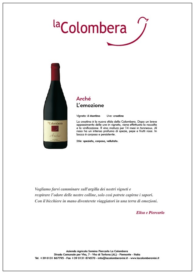 Ho accompagnato il piatto con qualche calice di Arche’, la meravigliosa croatina secca di La Colombera.