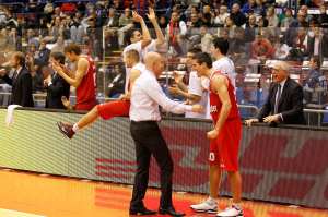 A quelli di Venezia, che hanno abbattuto Brindisi a domicilio, facciamo cucinare un bel piatto di lasagne col radicchio della loro terra. Per una vittoria larga, ci vogliono porzioni abbondanti. E un piatto bello sostanzioso. Max Menetti, che ha sbancato Milano (tutti a letto senza cena), invece ci porta a mangiare fuori: il locale lo sceglie lui tra quelli che ci aveva segnalato tempo fa. Chiaramente scegliamo il più costoso e facciamo pagare Fabrizio Frates, lo sconfitto. Oppure, caro Max, possiamo sempre aprire un Lambruscone. Quelli di Avellino si meritano il “pranzo povero” di Giuseppe Matarazzo. Ma anche dei paccheri di Martella e un paio di bottiglie scelte nella cantina di Pasqualino Di Prisco. Trentello di Roma contro Caserta: tutti da Roscioli, che è il mio posto preferito in città. Oppure potrei prepararvi un abbacchio alla scottadito, come da ricetta originale. Ad Attilio Caja, che ha sbancato Ancona battendo Recalcati, non proponiamo le pesche sciroppate di Volpedo, che adora, ma un bel piatto siciliano: sarde a beccafico, che a me piacciono un casino. La chiusura per Romeo Sacchetti, trionfatore anche a Pesaro, primo in classifica imbattuto: una armata invincibile pronta per grandi traguardi. Caro Meo, ti propongo un bel pecorino di Osilo. Altissimo livello, come il tuo basket. (tutte le foto Legabasket/Castoria)