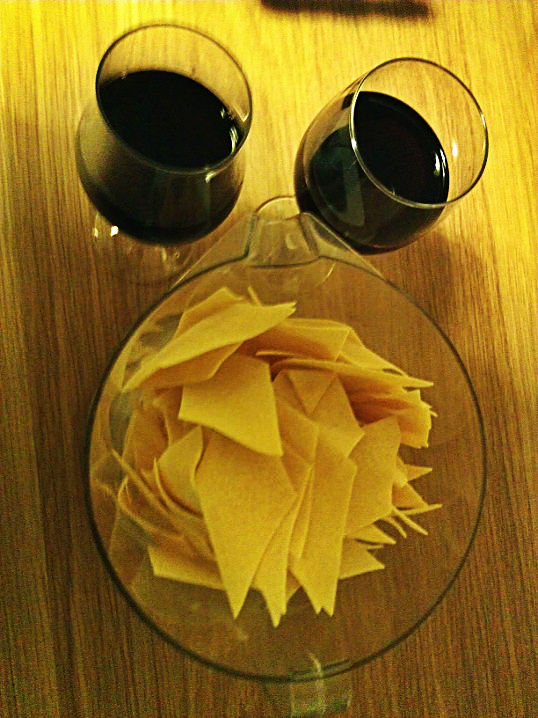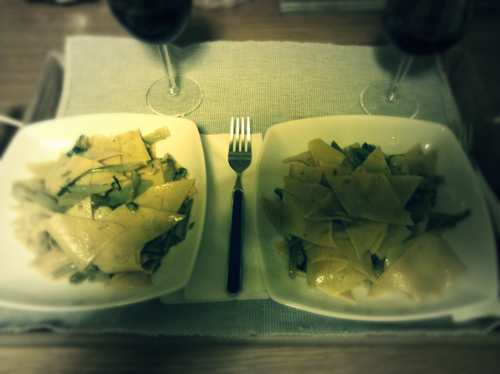 Questa sera, qui, maltagliati con puntarelle e acciughe. Un grande piatto, ma bisogna avere una pasta all’uovo giusta. Bella ruvida e al dente. Un primo riuscitissimo e di livello. Aglio e oglio, facciamo appassire le puntarelle, quindi sciogliamo le acciughe. Scoliamo la pasta un po’ prima e la spadelliamo col nostro condimento. Un primo facile e che può farvi fare un figurone. Ma andiamo a vedere cosa succede nel “mondo” oggi: locali, pietanze, calici. Un viaggio in progress con un inviato speciale, Alessandro Necchi, al Garghet di Milano.
