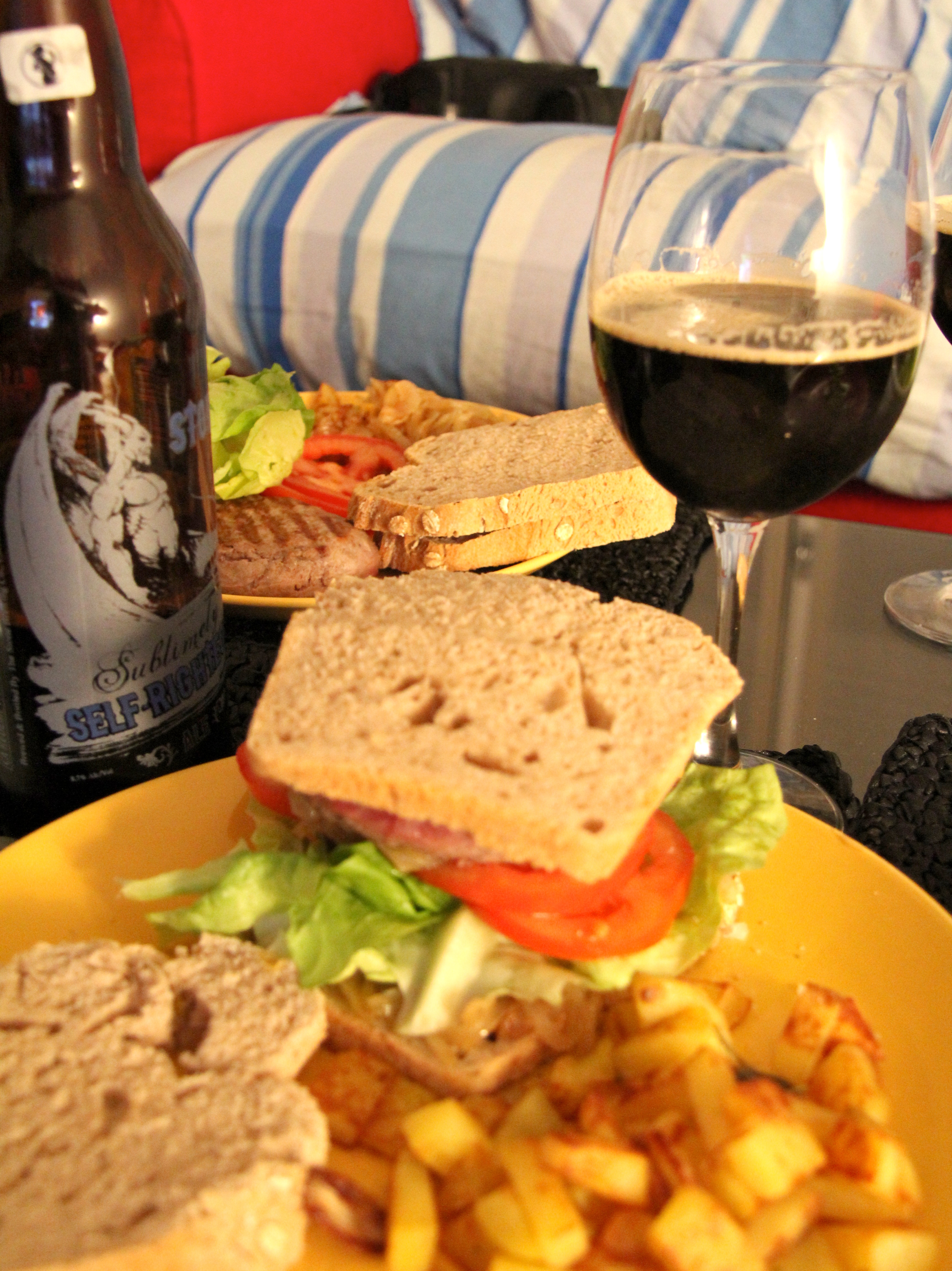 Dopo un inizio di settimana movimentato, mi sono coccolato insieme agli amici di sempre con il mio hamburger gourmet. Il pane di Luca Grasselli dell’azienda agricola Lagoscuro abbraccia la carne del Macellaio delle nebbie, Franco Cazzamali, la verdura fresca dell’Azienda Ca’ del Conte, la senape selvatica di Beaune, il tutto annaffiato da una tra le IPA migliori al mondo, la Arrogant Bastard Ale del birrificio americano Stonebrew.