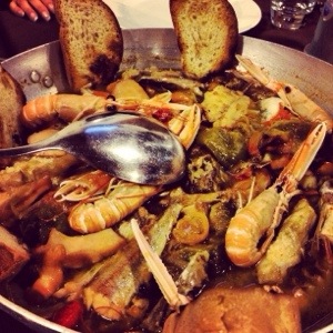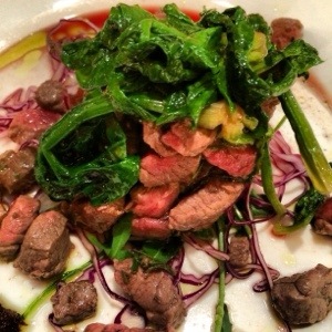 Vitello tonnato e pasta e ceci da Nicoli a Monte San Giusto.