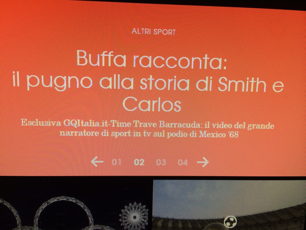 Le foto del buffet, della location e la homepage del sito con l’anteprima di un racconto inedito di Federico Buffa per il Time Travel di Barracuda.