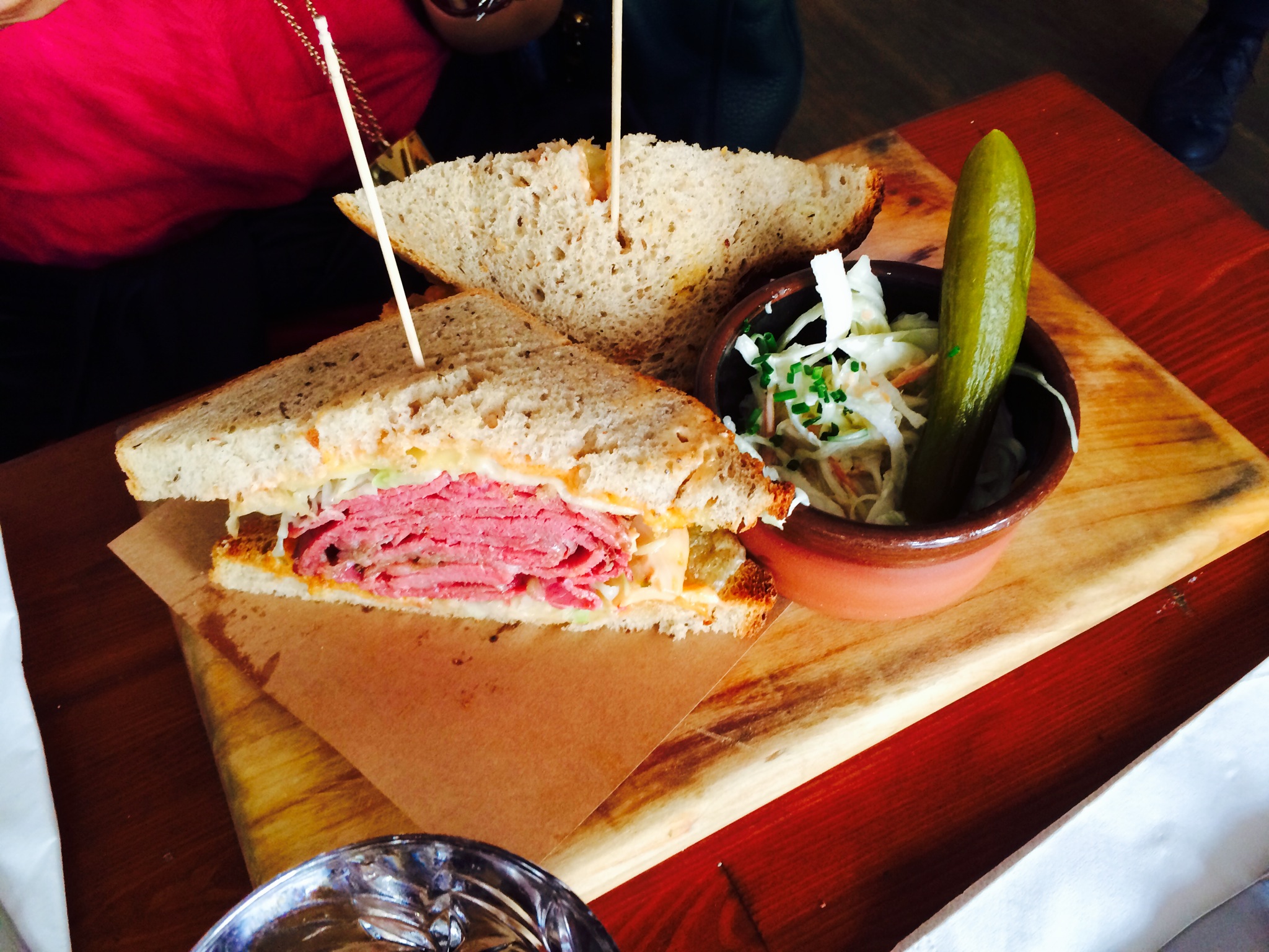 Non solo il Reuben sandwich, anche un meraviglioso paté di pollo e una porzione di lenticchie col formaggio di capra.