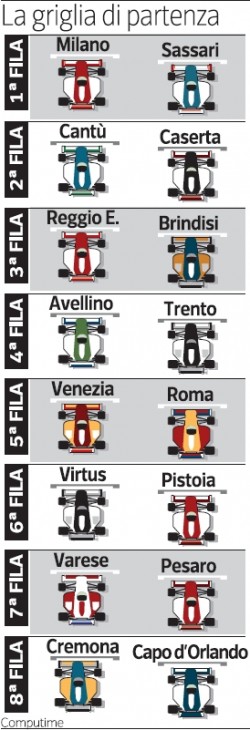 Le macchinine del giornalista di Corriere Bologna Daniele Labanti aprono come da tradizione la nuova stagione della pallacanestro di serie A. Una griglia sempre molto discussa, che scaramanticamente piace soprattutto a chi sta in fondo, meno a chi si guadagna le primissime file senza passare dalle qualifiche. Saliamo dunque sulle macchinine, segnalando, per ciascuna squadra, un posto imperdibile o una “abbinata” per condividere grandi bottiglie e alti cibi. Non è detto che siano tutti posti “segnalati”, anzi: ci teniamo a dire che su Basketkitchen non esistono marchette, solo sincerità.