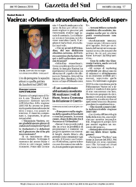 Un ringraziamento a Giuseppe Lazzaro e a Gazzetta del Sud. E’ sempre un piacere.