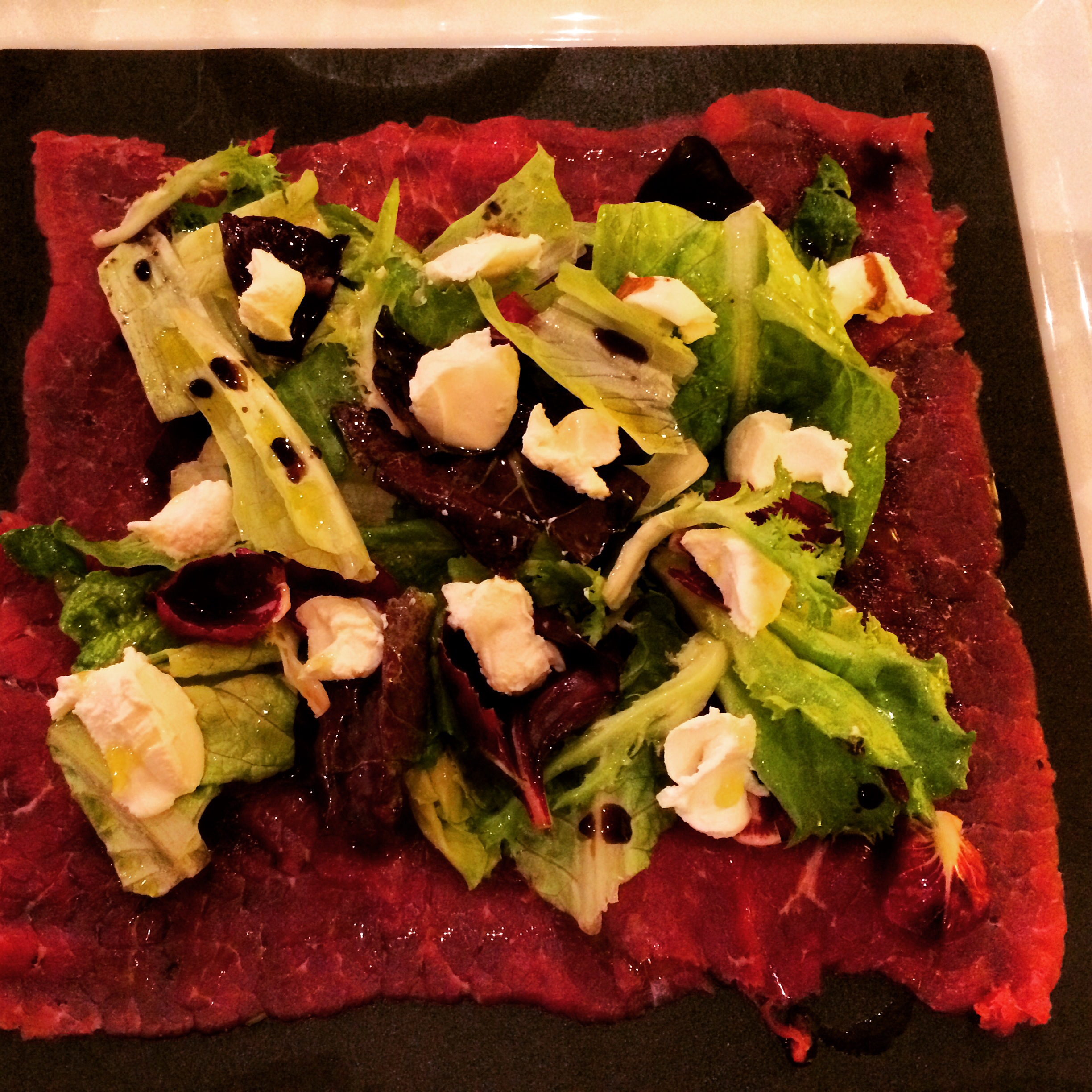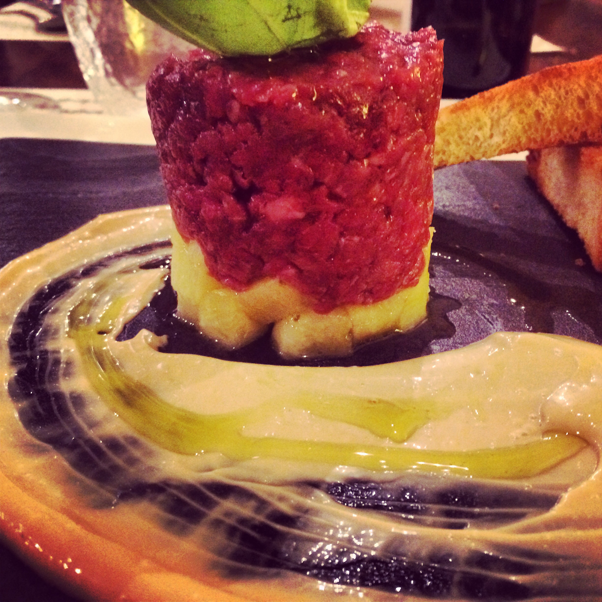 Piatti di carne ma non solo: la panzanella, la fassona al coltello con la maionese di wasabi, la quasi Amatriciana, la sfogliatella di manzo, il risotto al nero con la stracciatella, la carne cruda in insalata, la cacio e pepe e il tris di dolci.