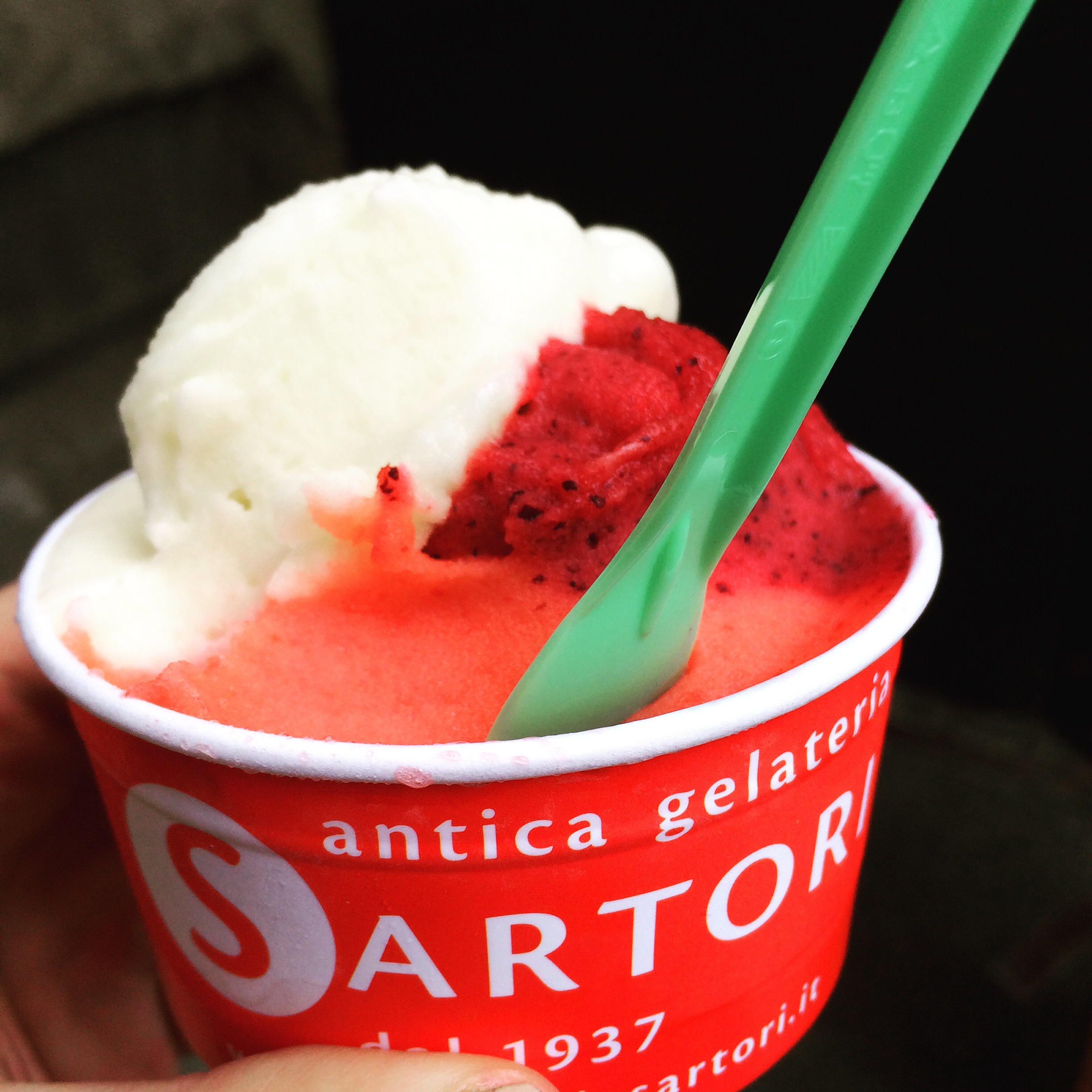 Gelato Giusto per l’incredibile sorbetto al cioccolato e il gusto mandorla.