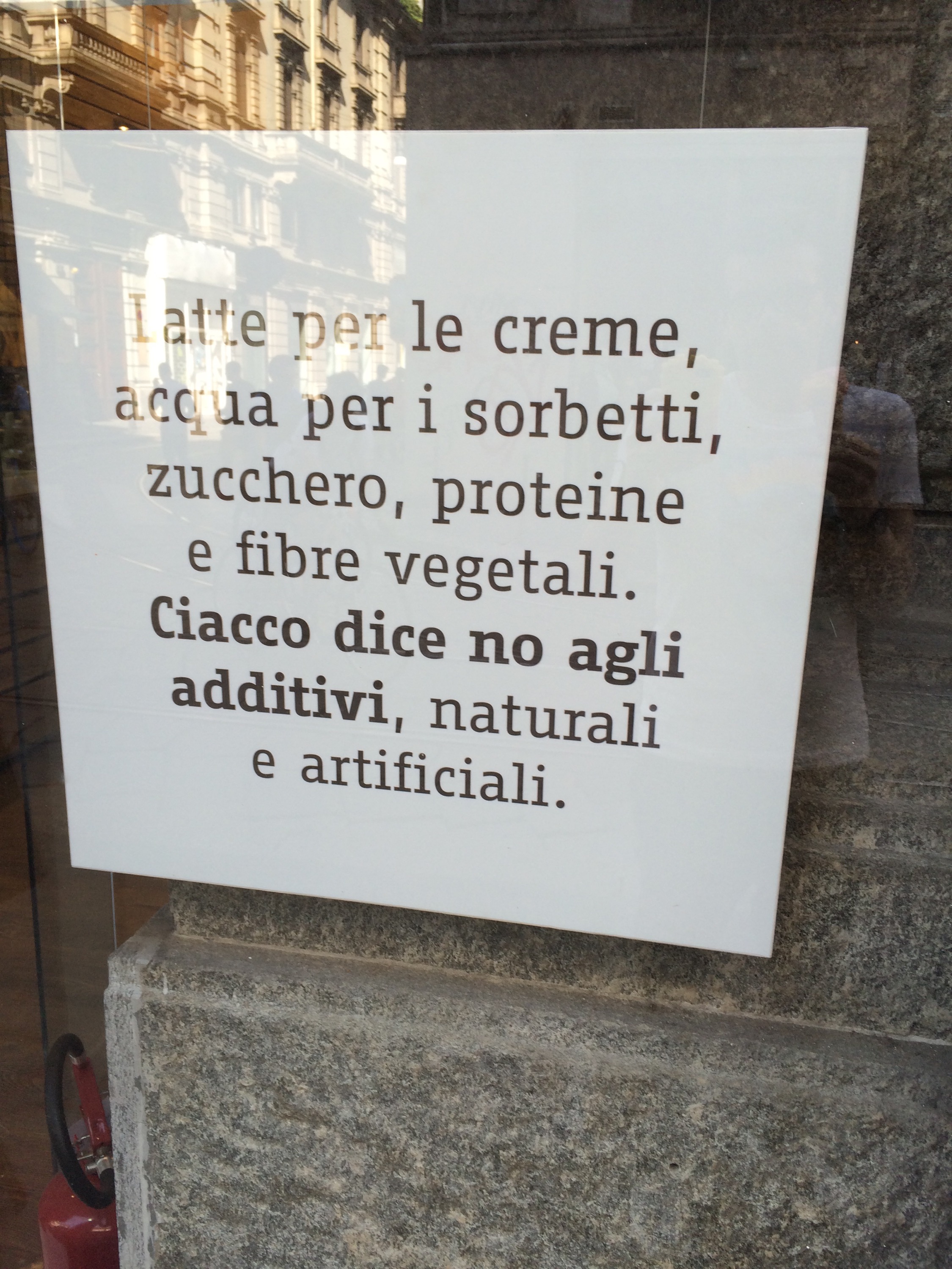Sono andato a provare il gelato di Ciacco, sbarcato a Milano da un anno in via Spadari vicino a Peck. L’idea del parmense Stefano Guizzetti prevede esclusivamente l’uso di fibre e proteine di origine naturale al posto di addensanti, emulsionanti e gelificanti. Non ci sono additivi, naturali e artificiali. Non ci sono coloranti e conservanti: il motto di Ciacco è molto carino, “gelato senz’altro”. Per le sue caratteristiche il gelato di Ciacco è diventato il punto di riferimento cittadino per i Vegani.