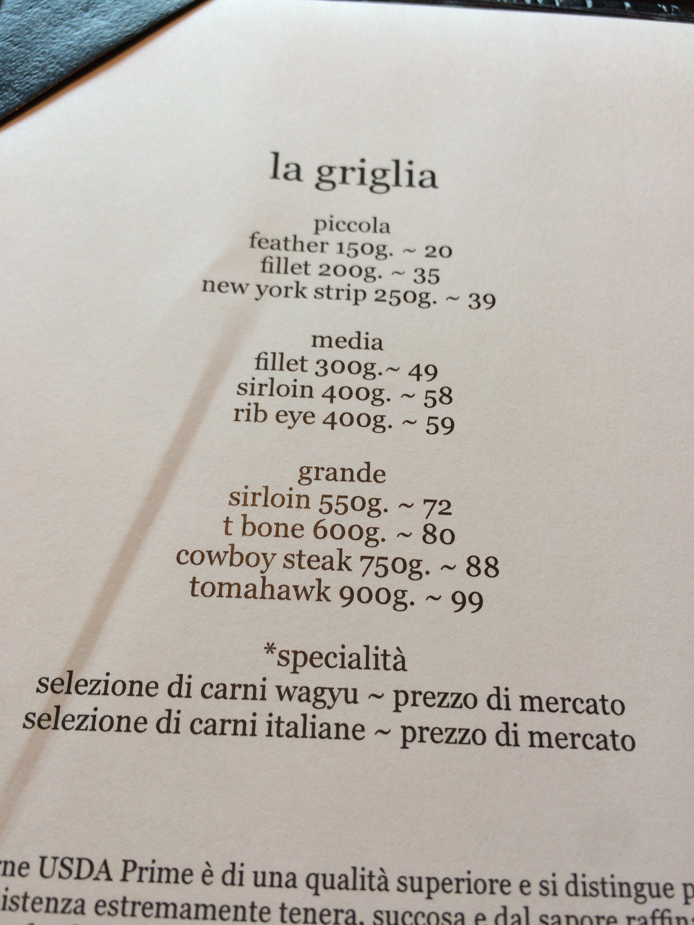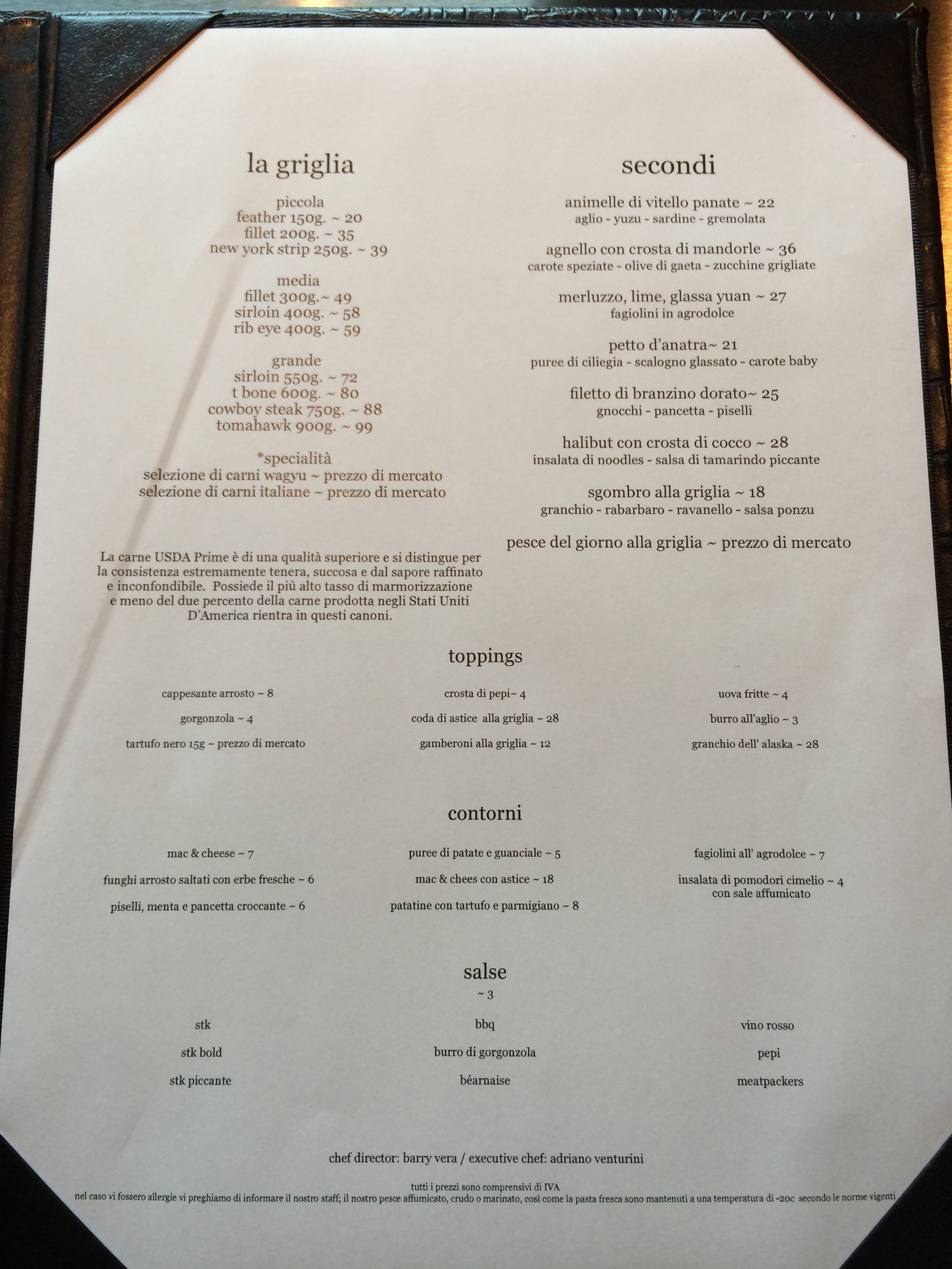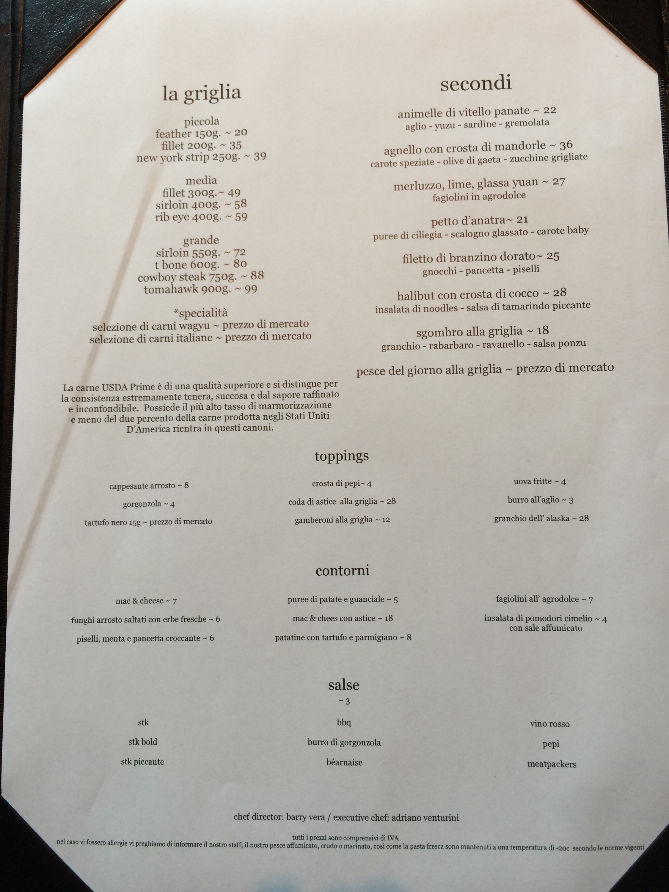 Prima assoluta per la steakhouse di lusso al primo piano del Me in Piazza della Repubblica a Milano. Dopo il “rodaggio” col Family & Friends, questa sera si parte. Posto bellissimo, sapore di NYC & Brooklyn in città. Si mangia fino a mezzanotte (alla una nel weekend), c’è sempre un deejay set e ci si può accomodare anche solo per un drink. In anteprima un po’ di foto da dentro il locale oltre al menu: tanta griglia di carne ma anche piatti di pesce e un Halibut da circoletto rosso.