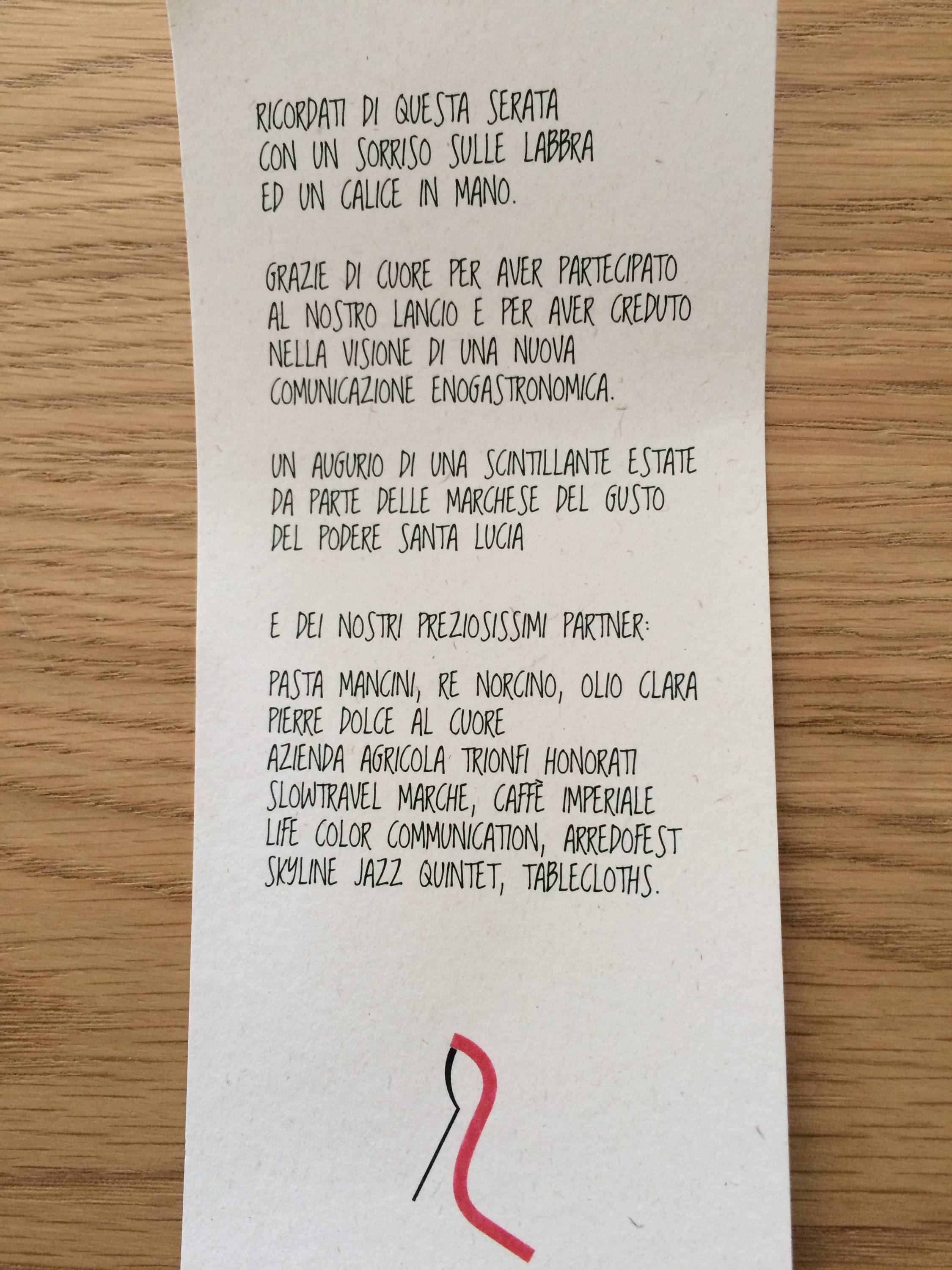 “Ricordati di questa serata con un sorriso sulle labbra ed un calice in mano”. È proprio quello che sto facendo ora. Missione compiuta per le Marchese del Gusto, sei amiche e una missione: parlare delle Marche cercando nuove forme di comunicazione.