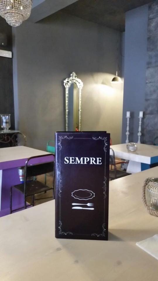 L’amico Lorenzo Settimi mi ha mandato a Porto Sant’Elpidio da SEMPRE, un locale piuttosto bizzarro e interessante nato nel dicembre scorso. Non sapevo esistesse, adesso lo so, e ci tornerò volentieri. Andatelo a visitare, se siete della zona. Perchè faccio abbastanza fatica a descrivere location e arredamenti, quasi sontuosi. Si, sontuosi. Lampadari importanti, una bella combinazione di tavoli e sedie. Un dehor carino. Però dovete andarci e capire, magari anche dal 1 ottobre, sarà aperto anche a pranzo con un menù ad hoc.