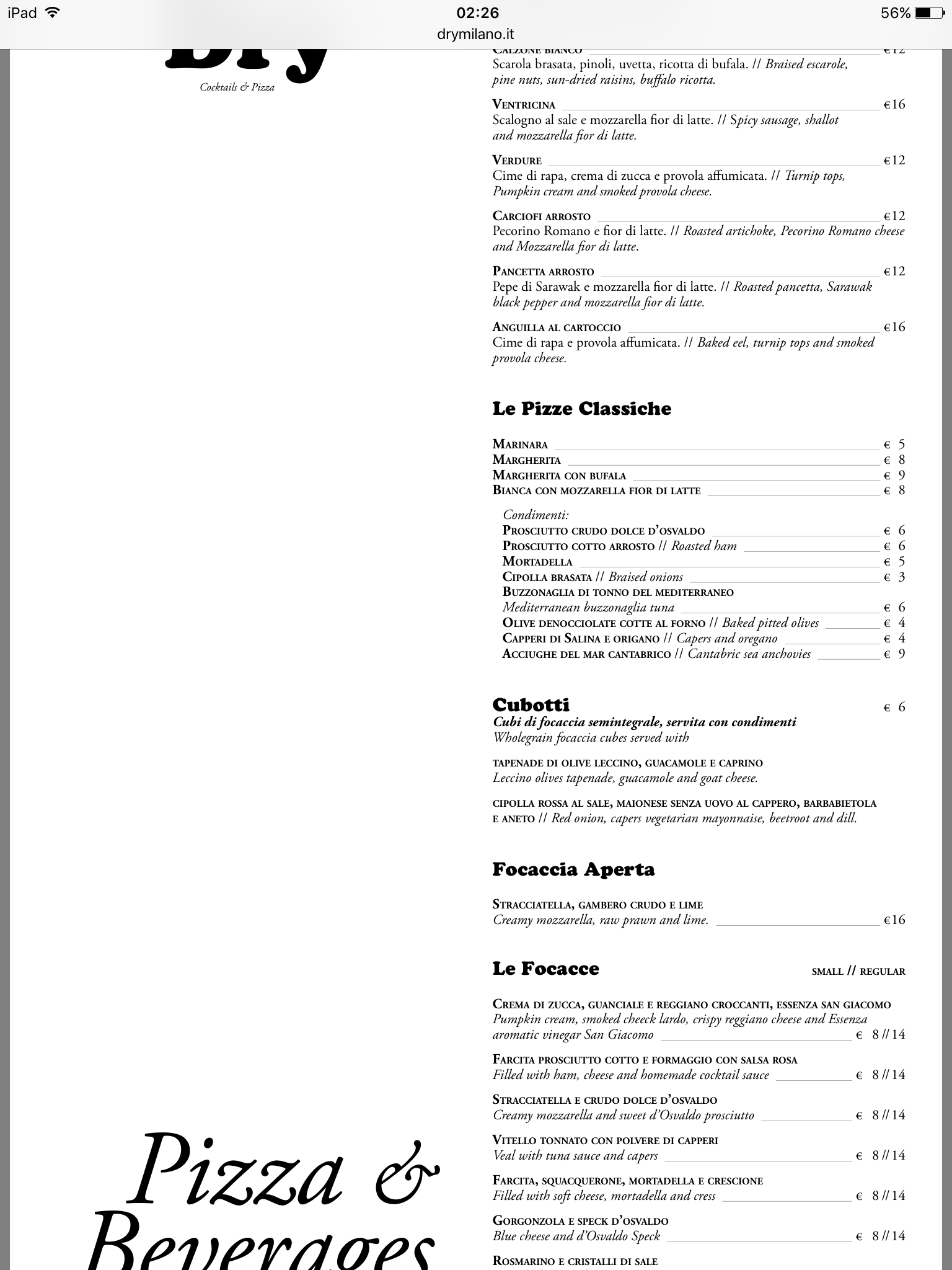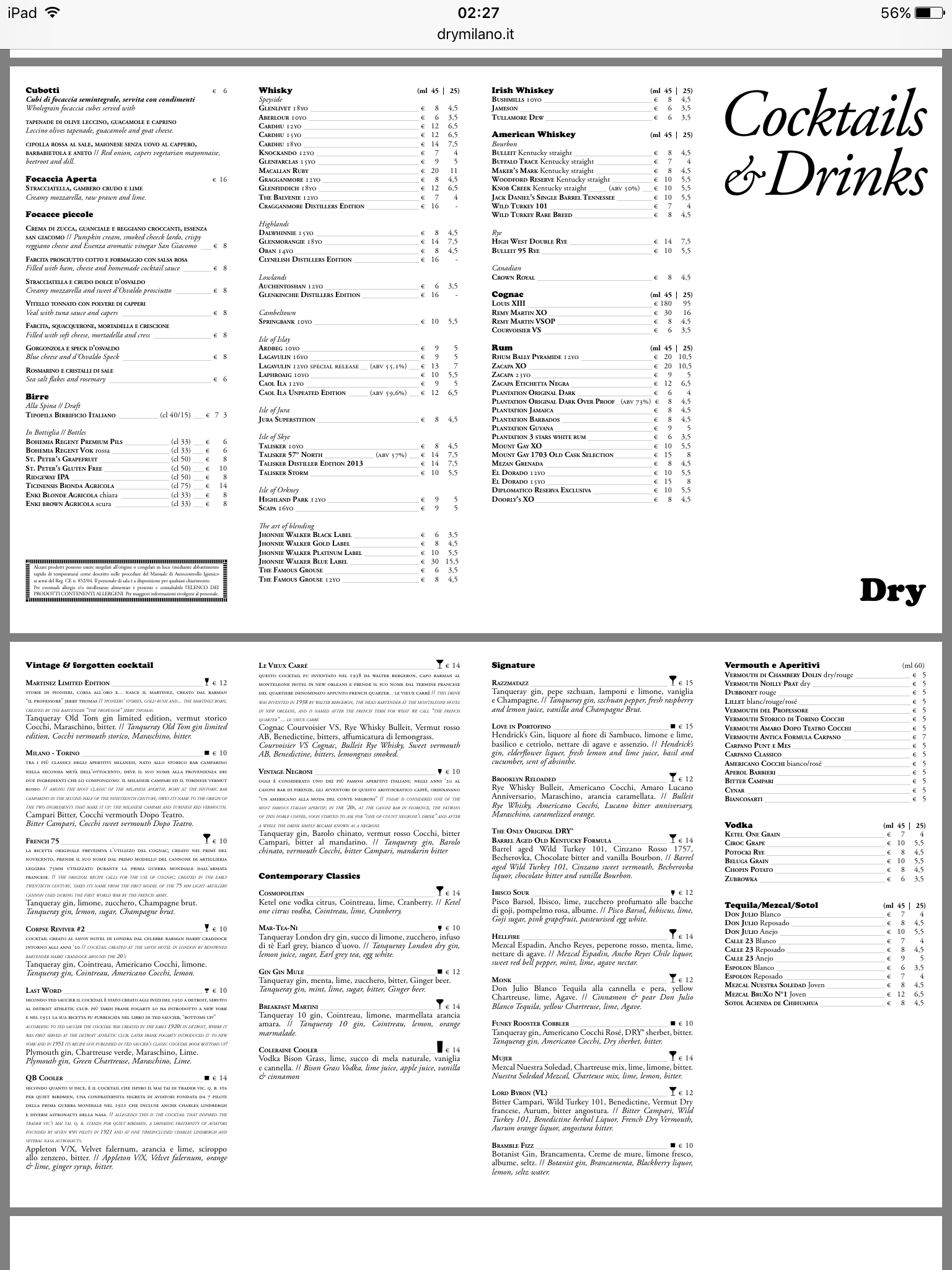 Infine la trasferta a Milano per un cocktail tra amici e colleghi da Dry in via Solferino, dove il locale serve appunto pizze e focacce abbinate a cocktails.