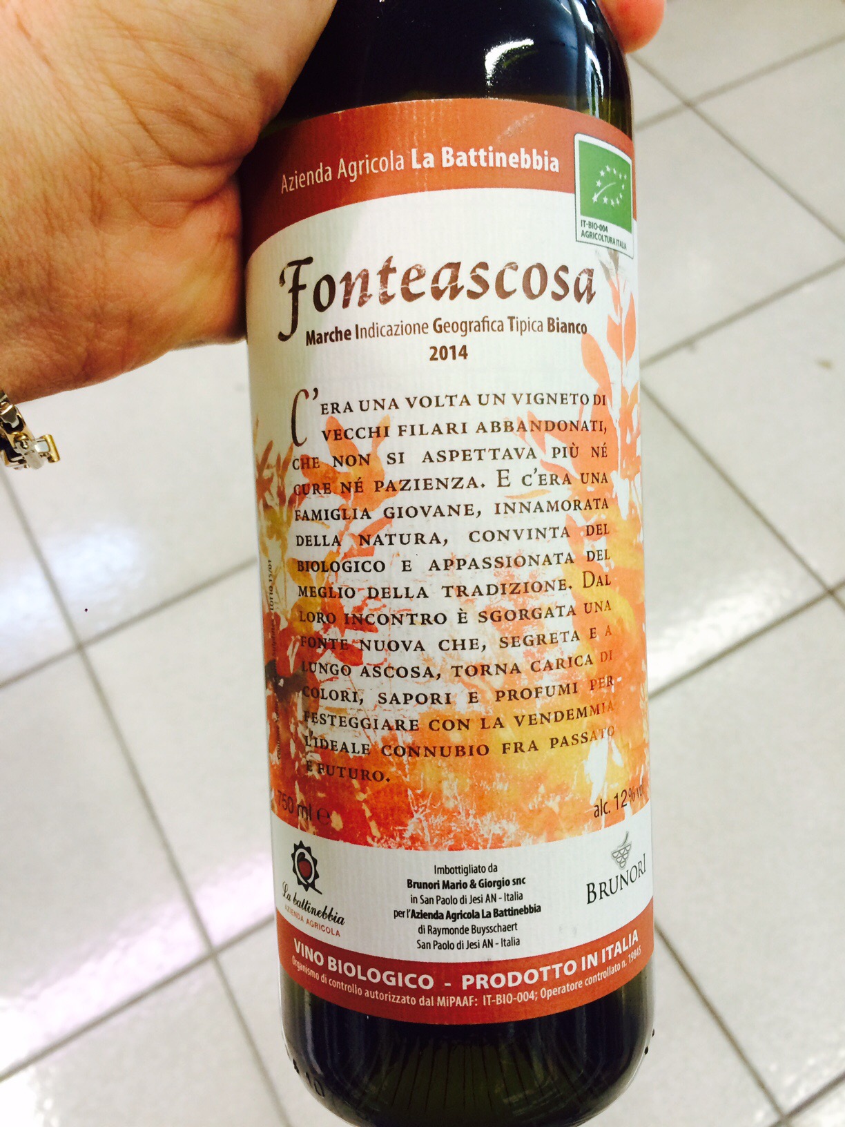 Marche Bianco IGT, è un Verdicchio proprio interessante. Per chi ama bere naturale. 10,90 euros