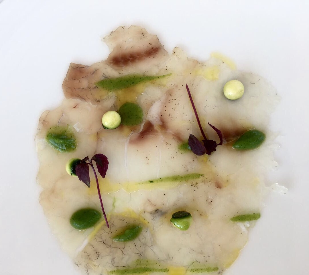 Il menù è stato costruito attorno al pesce, ma la carta concede anche opzioni di carne. In accompagnamenti i vini di un produttore locale, Giuliani: abbiamo sbirciato la carta di vini per farci un’idea della proposta, che è ampia e ben selezionata.