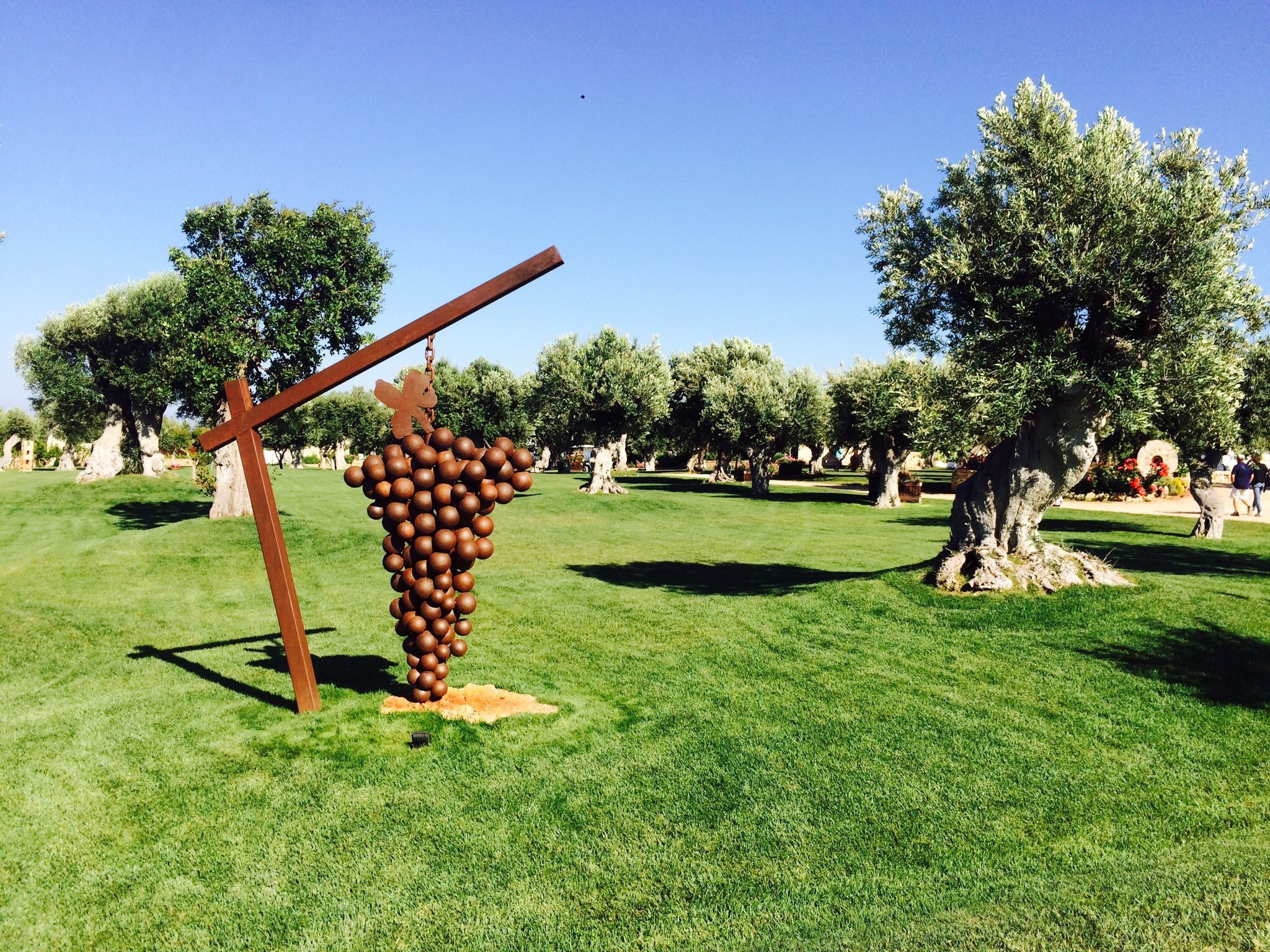 Ero abbastanza preparato alla bellezza di Terre di San Vito, il sogno realizzato dalla famiglia De Napoli, padre e figlio, che dal mondo del fashion (mass market il padre Franco, luxury il figlio Giovanni) si sono felicemente “spostati” a casa loro in un posto da sogno a Polignano a Mare. Ma a una cosa così bella non eravamo preparati. Wow! Rifatevi gli occhi: tutto curatissimo, ulivi secolari, vitigni internazionali ambiziosamente impiantati qui, una festa che presumo sia andata avanti fino a notte fonda. Calma però: qui non si fa ristorazione, non si fa resort, non si fanno cerimonie e matrimoni anche se c’è una bella chiesa di proprietà e consacrata. Si fa (il Vescovo 2015 non è affatto male), si fa Olio (il blend mi ha lasciato una buona bocca) si coltivavano patate e carote di Polignano. E si punta sul wine tasting sul posto (e ci credo) per vendere le proprie cose.