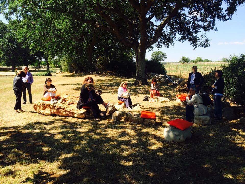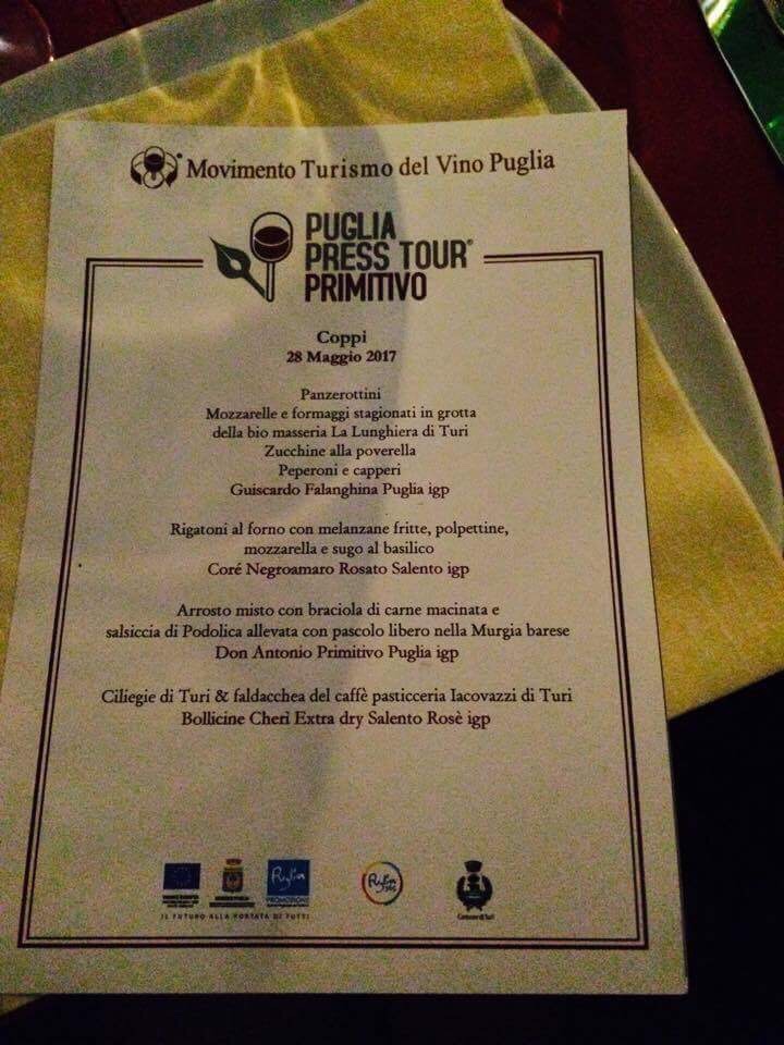 Il programma specificava che a Turi, dai capofila del consorzio con le loro 600 mila bottiglie e un cognome che unisce Puglia e Colli Tortonesi, ci sarebbe stato un light lunch. Come no, ci attendeva una festa accompagnata da musica e pizzica, e un tipico pranzo della domenica pugliese, dagli antipasti ai rigatoni al forno, dalle bombette alle faldacchee con pan di Spagna, mandorle e cioccolato fondente. Il vino che ha dato lustro alla casa è il pliripremisto Senatore 2010.