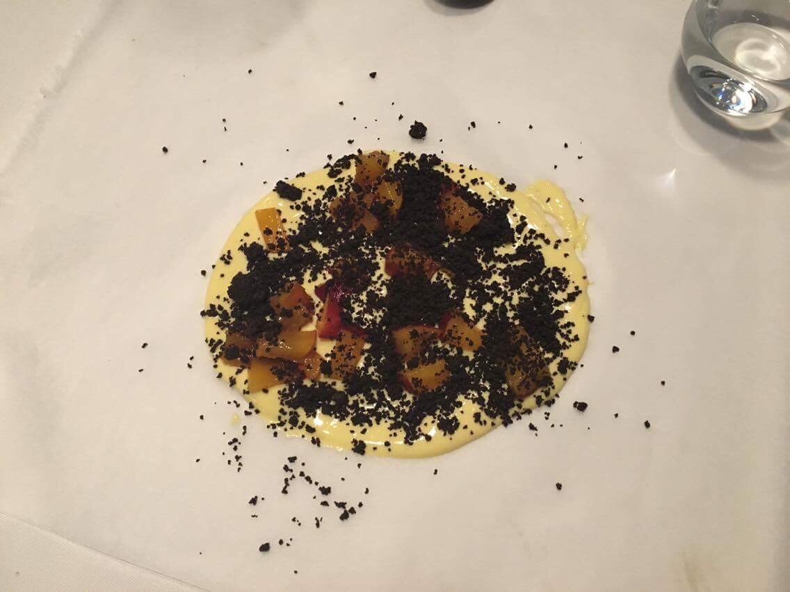 Da apoteosi la patata con le vongole (piatto dell’anno finora), gli spaghetti con le triglie (tempi di cottura perfetti), il gelato alla banana con il croccante di pane, la “polenta” con le pesche e il cioccolato.
