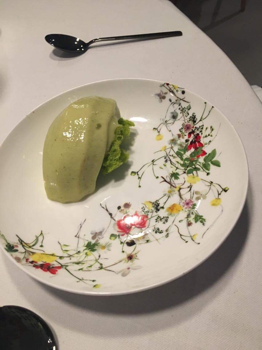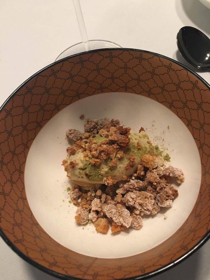 Il dolce dedicato alle erbe aromatiche è stravagante e travolgente, tre erbe e tre diverse consistenze, mi ha ricordato certe cose di Paolo Brunelli, ho sentito l’Umami, il quinto gusto, è la portata perfetta per chiudere, figlia di una sperimentazione e di una ricerca ossessiva, senza aggiungere niente altro, manco il caffè.