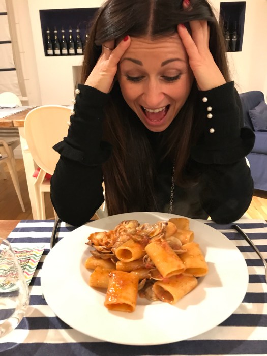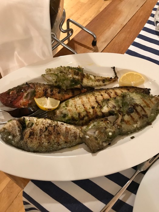 Abbiamo mangiato un antipasto davvero molto serio, un piatto di paccheri Mancini con un robusto sugo di pesce, una bella grigliata col pescato del giorno.