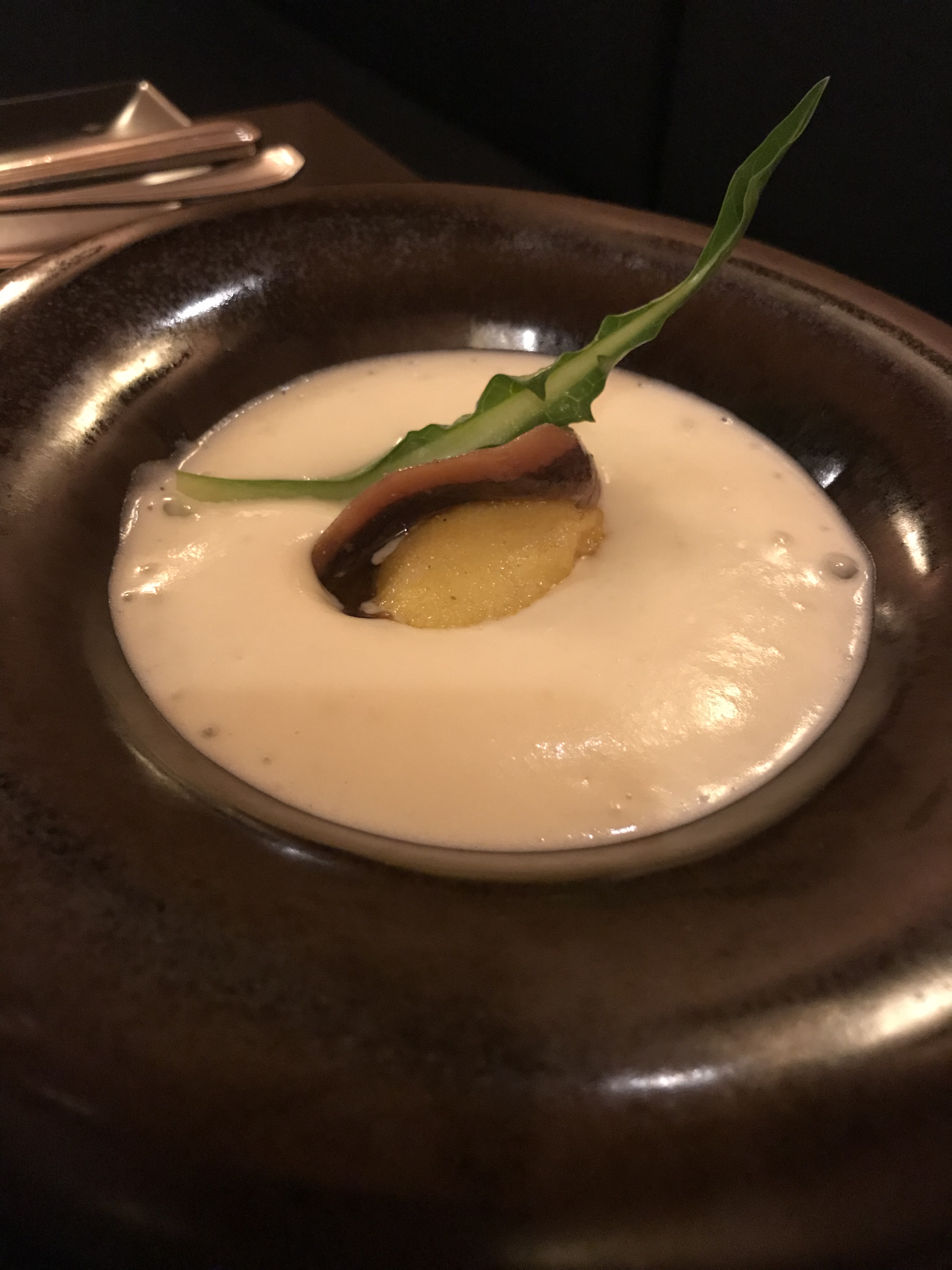 Veruska ha scelto l’uovo con la spuma di patate e le alici che è una delle specialità della casa: provare per credere.