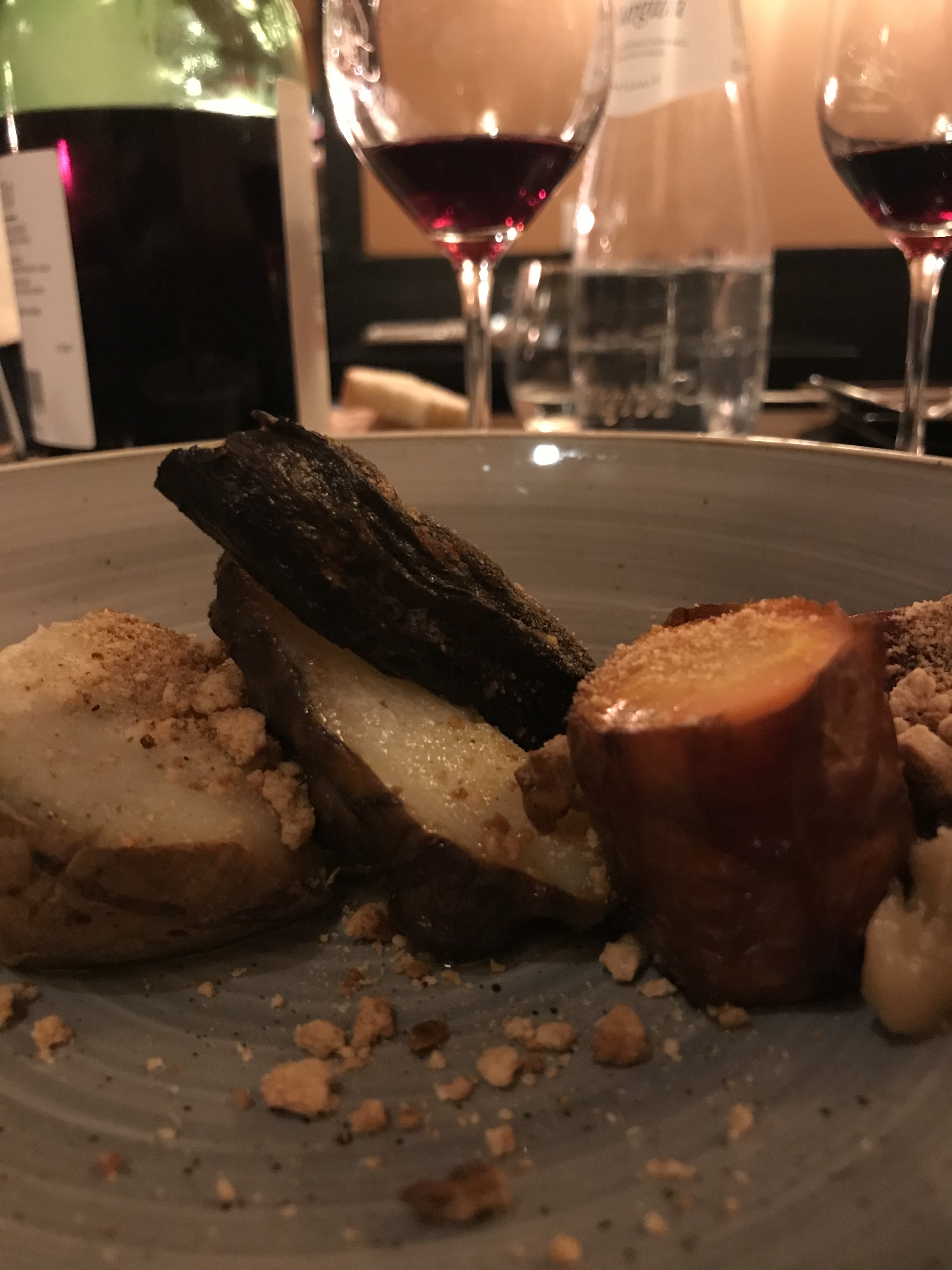 Antipasti notevoli: io ho scelto un fuori menù vegetariano fatto di radici e tuberi cotti ad altissima temperatura. Da sballo.