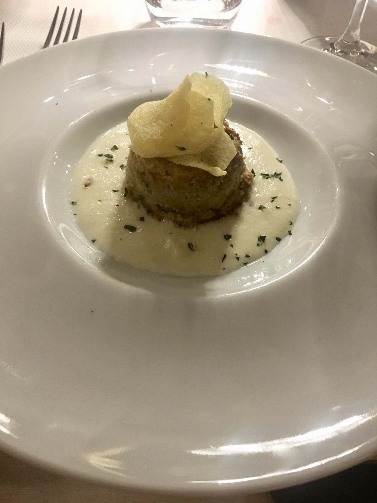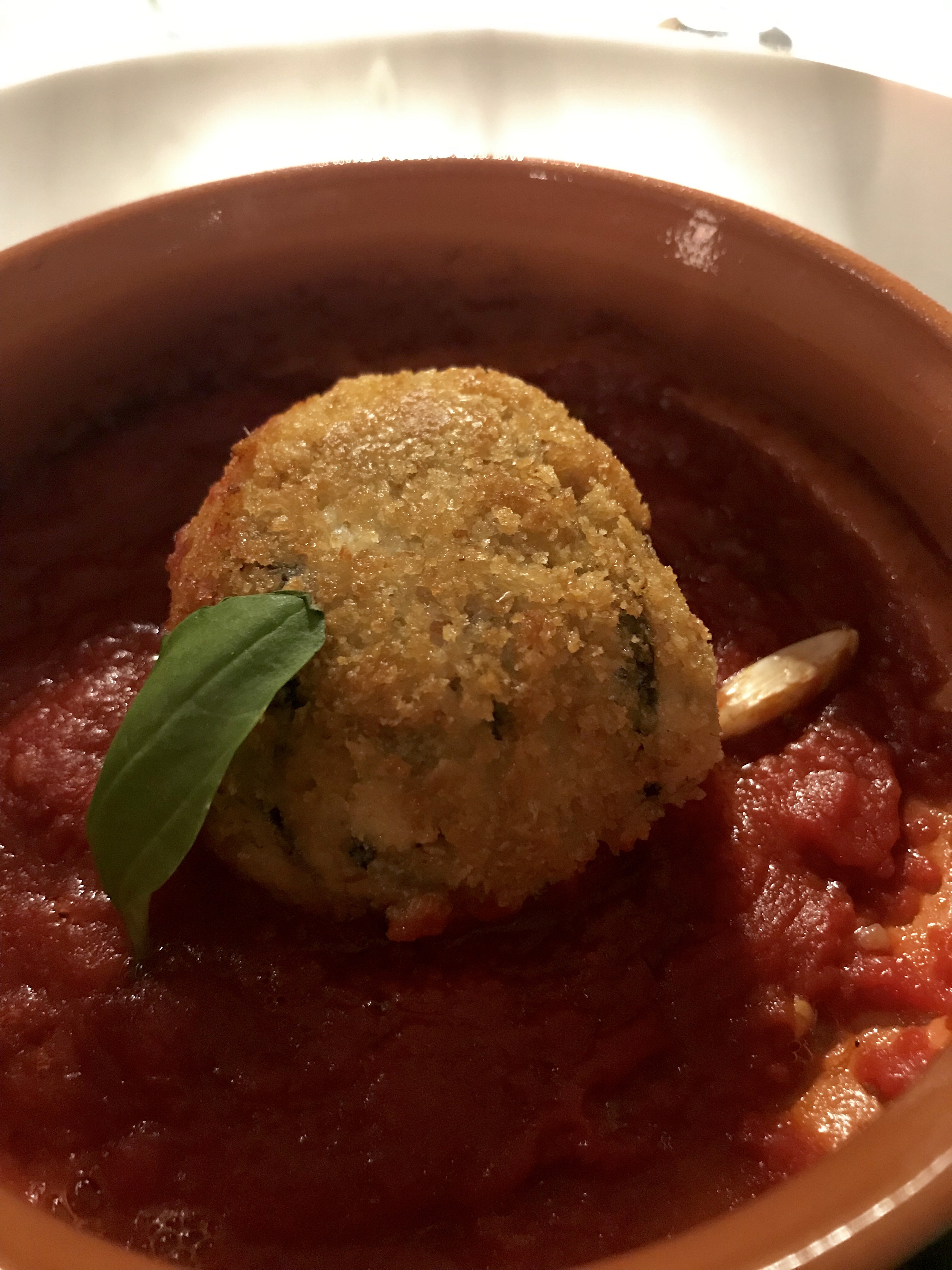 Ho iniziato con una golosissima polpetta di Alici (con scarpetta) mente Veruska ha scelto il flan di carciofi.