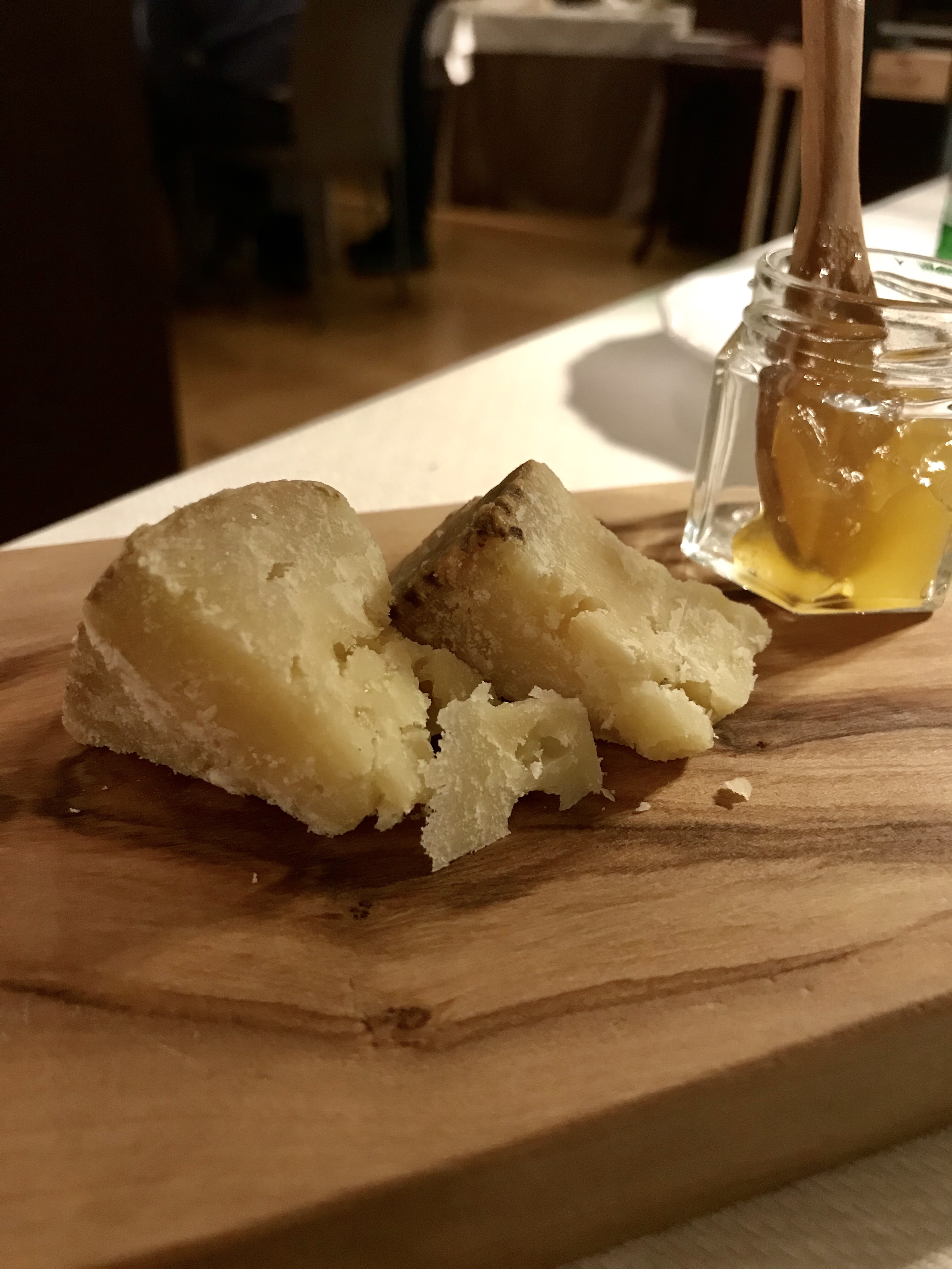 Chiusura con un pezzo di formaggio e una dose mostre di Pantorrone: un dolce che da solo varrebbe il viaggio.