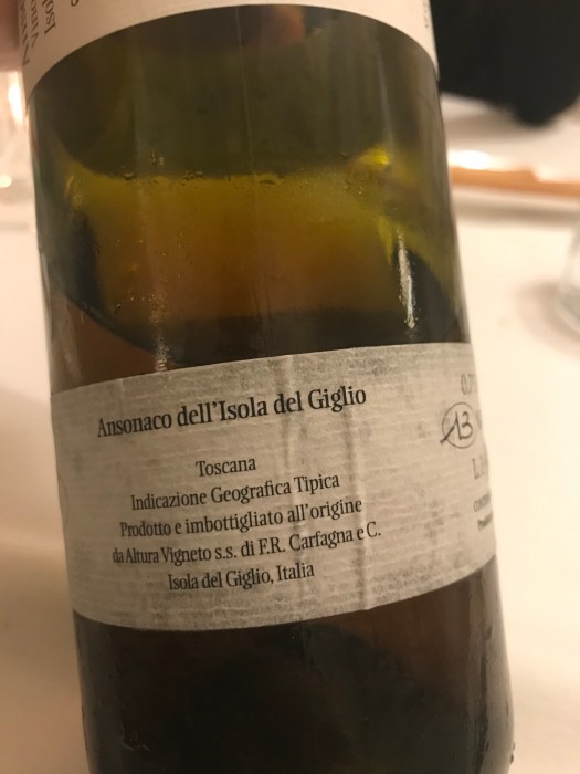 Dei vini, vi ho già detto: noi siamo andati fino all’Isola del Giglio, pescando un Ansonaco da sballo.