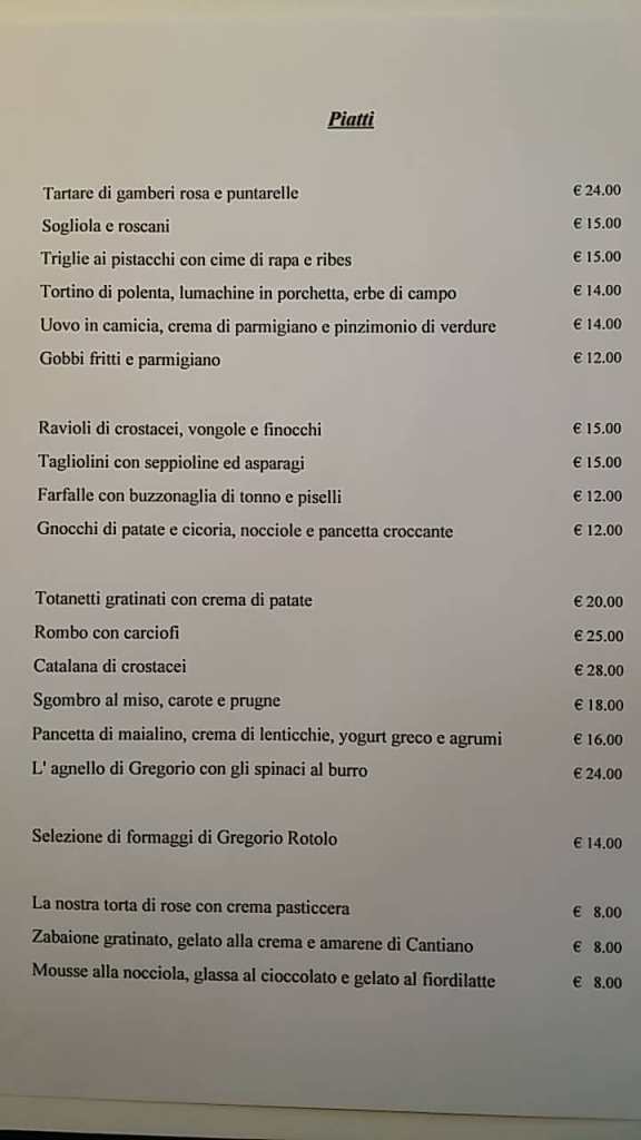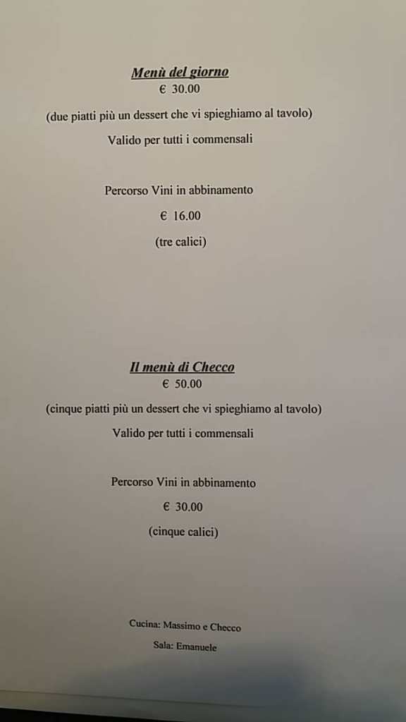I menù sono due, si “entra” a 30 euro, c’è quello di Checco a 50.
