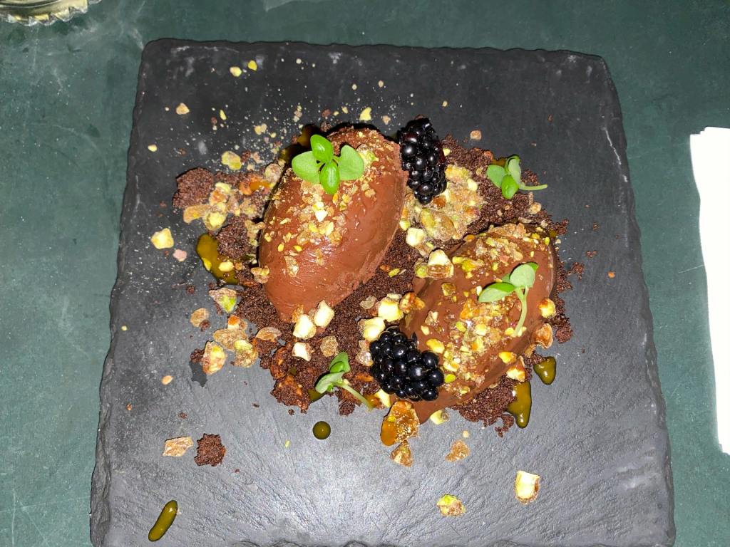 Spicy Chocolate Ganache: Amaretti, passion fruit coulis