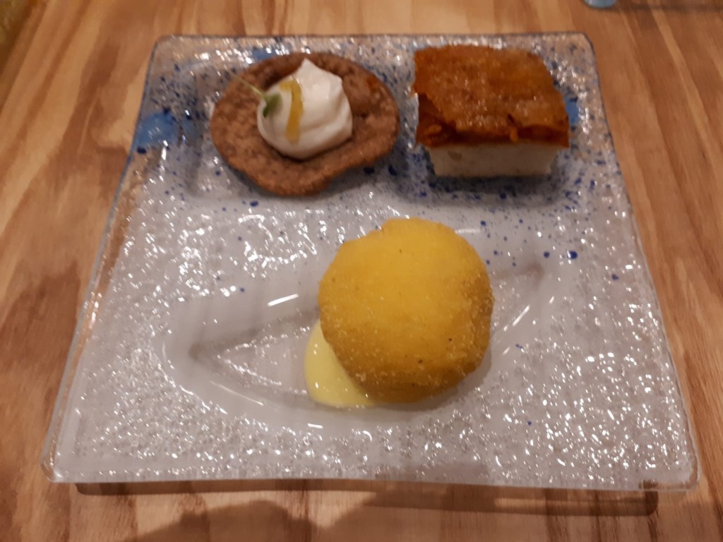 io ho mixato con una tartare di spigola con spuma di mozzarella e broccoletti scottati, poi alici con formaggio primosale e verdure in pastella. Golosissime, ne avrei ordinata un’altra porzione!
