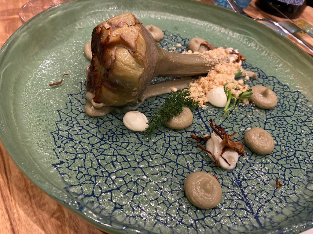 Inutile dire che siamo stati in grazia del Signore: servizio e attenzioni impeccabili, i pani con l’olio e il ricchissimo benvenuto anticipano una serata molto solida nelle porzioni e raffinatissima nelle esecuzioni per una cucina che della Sicilia racconta il mare e l’entroterra.