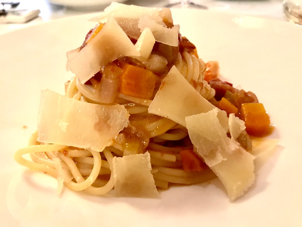 Michele ci ha poi raccontato i suoi nuovi spaghetti, all’olio marchigiano e col soffritto, che abbiamo letteralmente divorato.