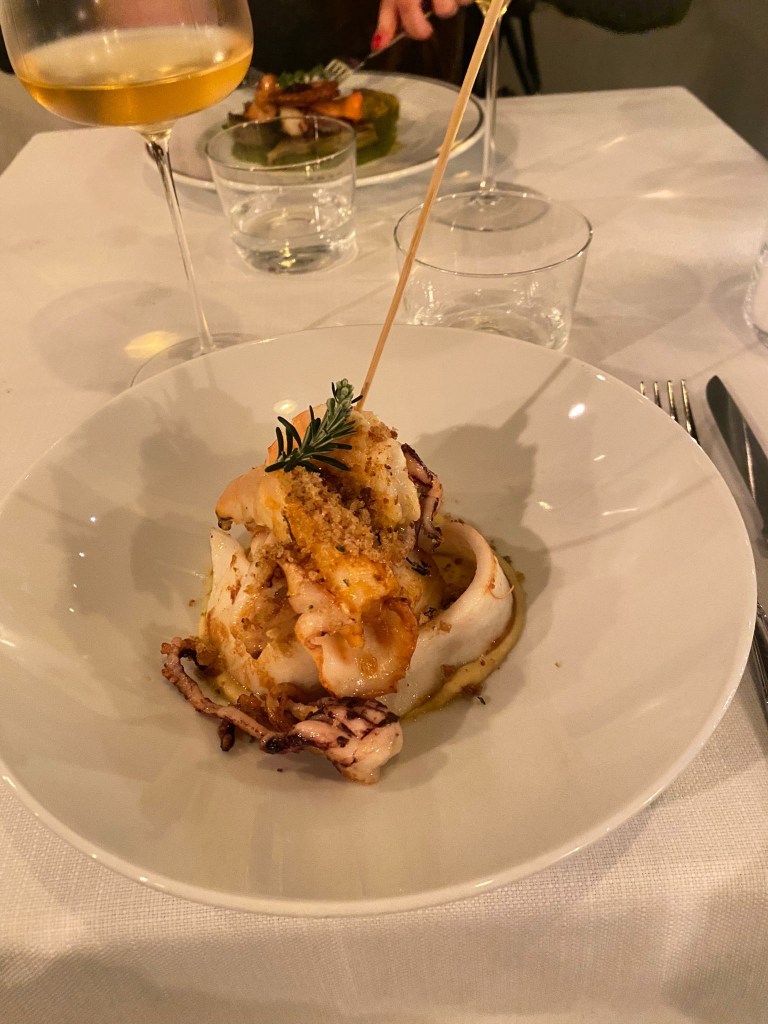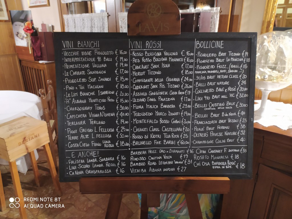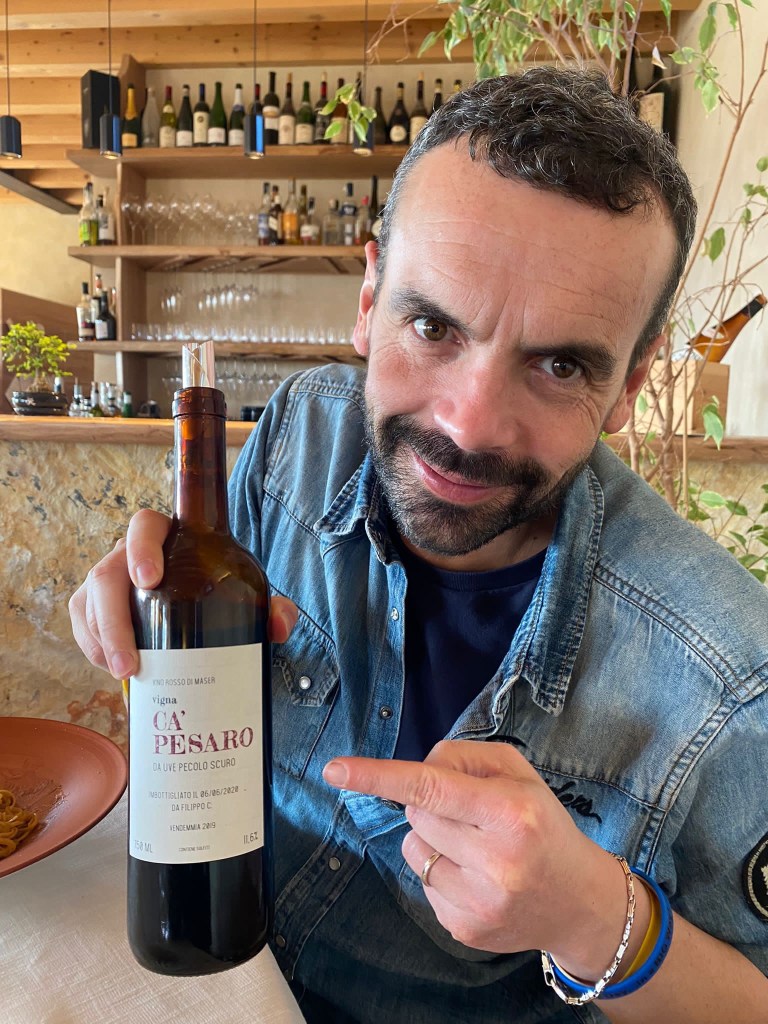 Esperienza notevole alla Paterna di Giavera del Montello. Cucina di terra per Veruska, di mare per me, il tutto accompagnato da una degustazione di vini assolutamente limitrofi. Ci siamo davvero divertiti. Peccato che poi abbiamo perso. (ps a colazione ci hanno servito anche il loro rinomato panettone, l’ultimo di una lunga stagione, voto alto)