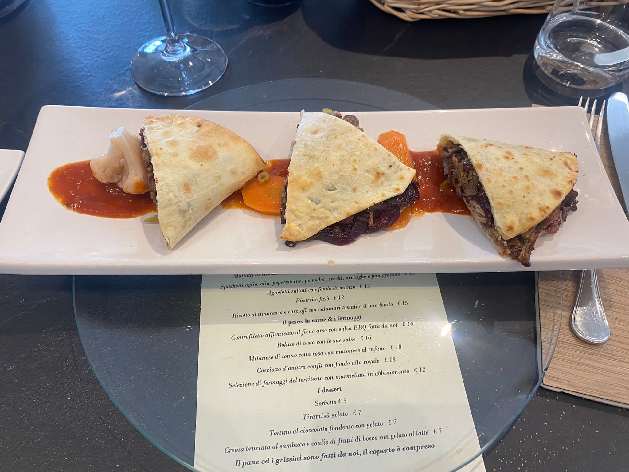 A pochi minuti dalla Unipol Arena dopo la partita del Derthona Basket con Reggio Emilia. Padrone di casa fantastico, carta dei vini notevole, cucina eccellente. Alla fine anche un Calvados di categoria.