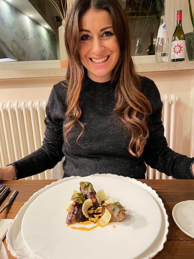 Mentre il divertissement del semifreddo alla mandorla con il porridge è piaciuto a me che amo sgranocchiare meno a lei, soprattutto dopo la nausea da popcorn della Vitifrigo Arena dalla sera prima.