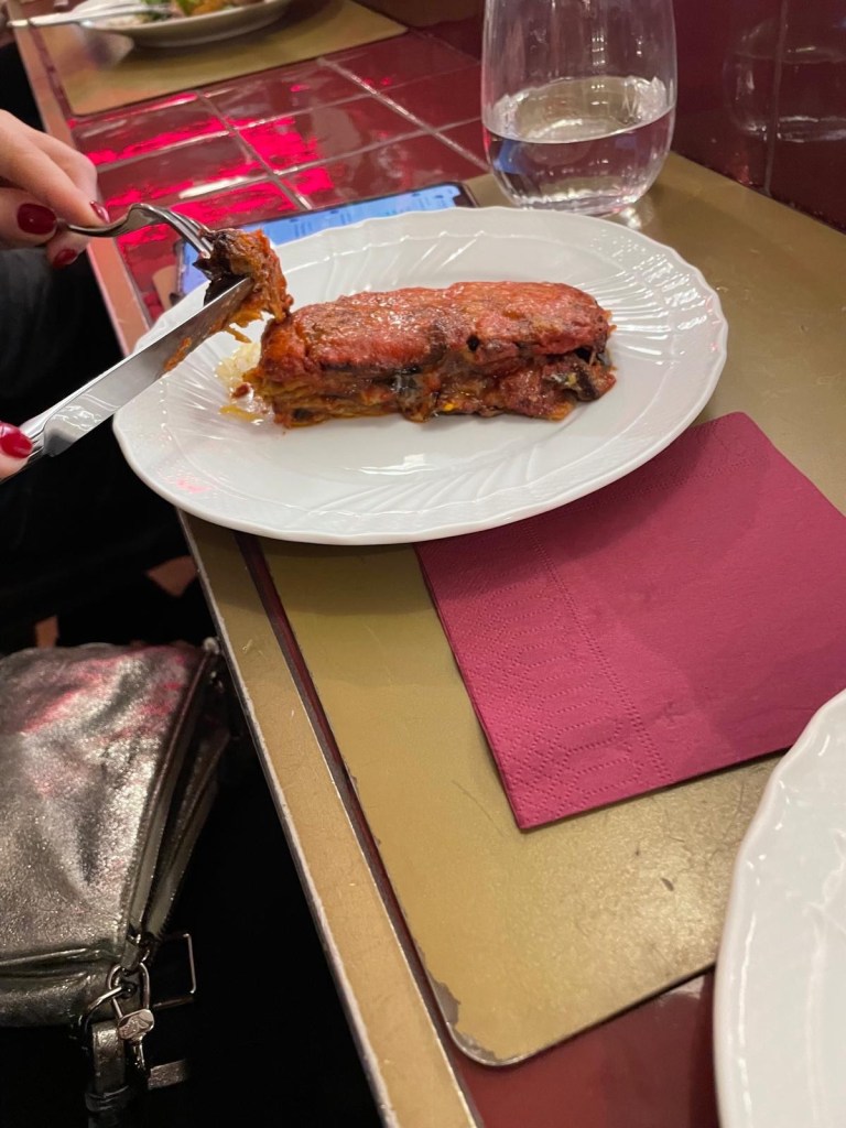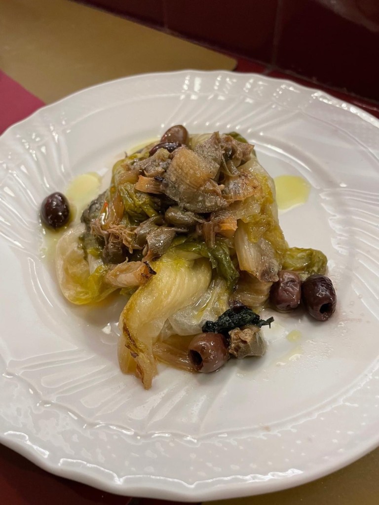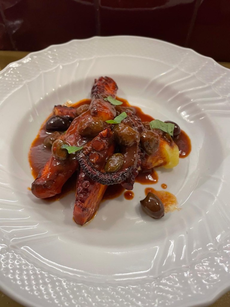 Tutto molto goloso: la parmigiana di melanzane, le scarole con gli olive, il polipo alla Luciana.