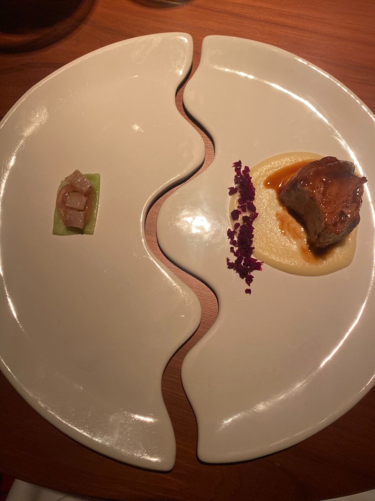 La storia dell’ossobuco di tonno te la vengono a raccontare al tavolo con tanto di descrizione tecnica e visual dedicato , primo momento cinema della serata