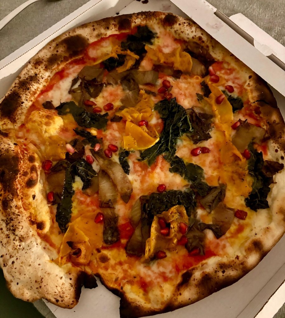 Siamo andati a mangiare la pizza da Trigu, locale piccolo e affollatissimo, e ho il piacere dj condividere la piena soddisfazione: due pizze assolutamente strepitose, ricche, di quelle che ti appagano, Veruska ha scelto la versione in doppia cottura.
